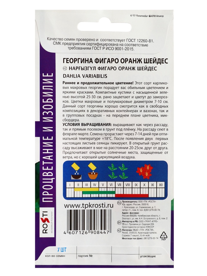 Семена цветов Георгина Фигаро Оранж Шейдес Агроуспех 7шт (400)