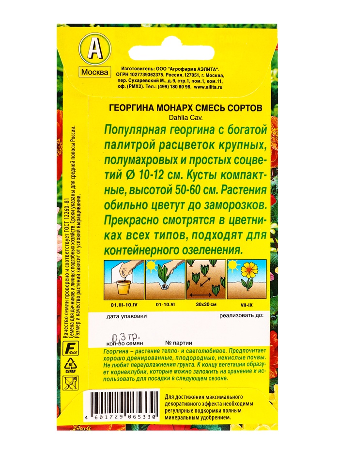 Семена цветов Георгина Монарх, смесь сортов , Ц/П,0,3 г