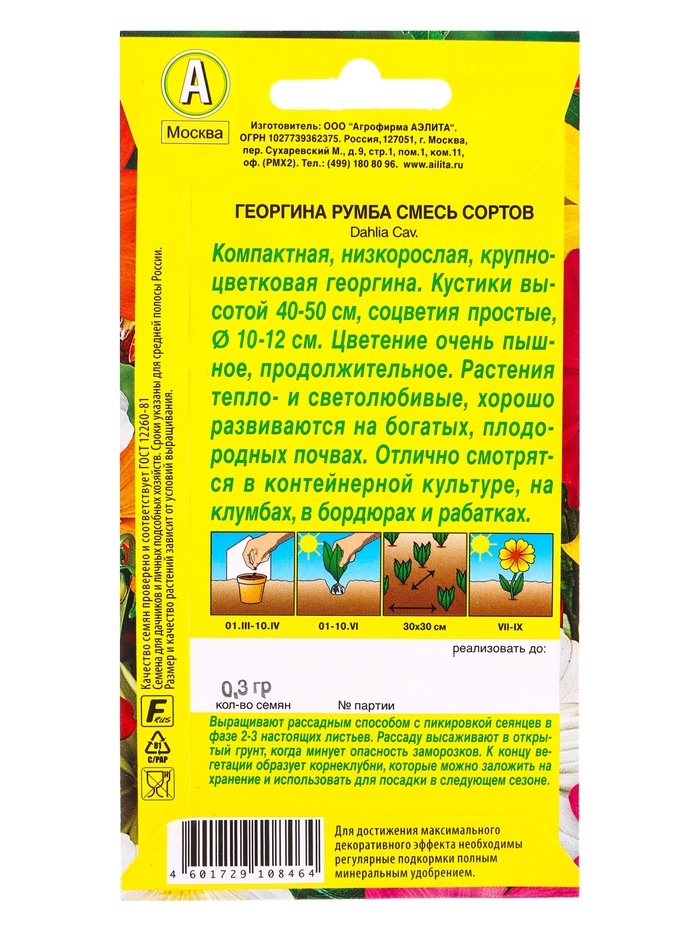 Семена цветов Георгина Румба, смесь сортов , Ц/П,0,3 г