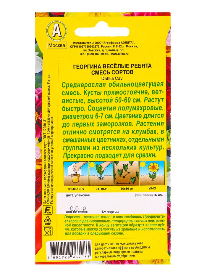 Семена цветов Георгина «Весёлые ребята», смесь сортов,0.6 г