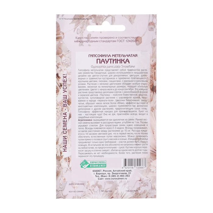 Семена цветов гипсофила метельчатая «Паутинка», 0.1 г