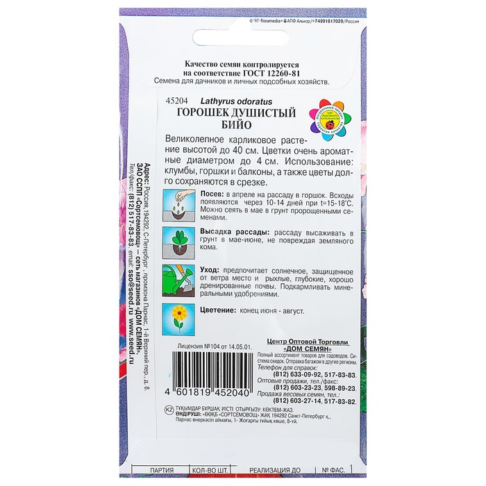 Семена цветов Горошек душистый "Бийо" Дом семян, 10 шт