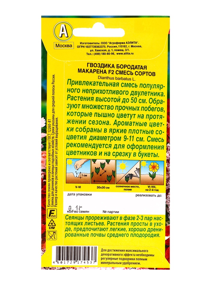Семена цветов Гвоздика Макарена F2, смесь сортов Дв, Ц/П,0,1 г