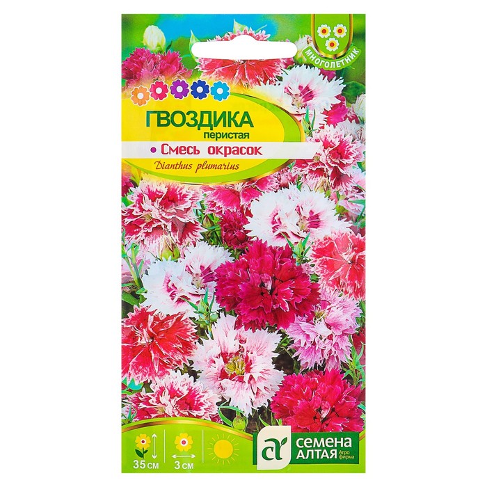 Травянистый многолетник. Эффектное компактное растение, образует плотную подушку из большого количества укореняющихся побегов. Цветки полумахровые до 3 см в диаметре, с бахромчатыми, разрезанными по краю лепестками, источают приятный пряный аромат. Смесь состоит из цветков белых, светло-розовых, розовых и малиновых оттенков. Используется для декорирования бордюров, клумб, на каменистых горках, для озеленения балконов и срезки. Цветение в июле-сентябре. Растение морозоустойчивое, предпочитает солнечные участки на плодородных суглинистых почвах. Не переносит переувлажнения. Хорошо реагирует на подкормки минеральными удобрениями.