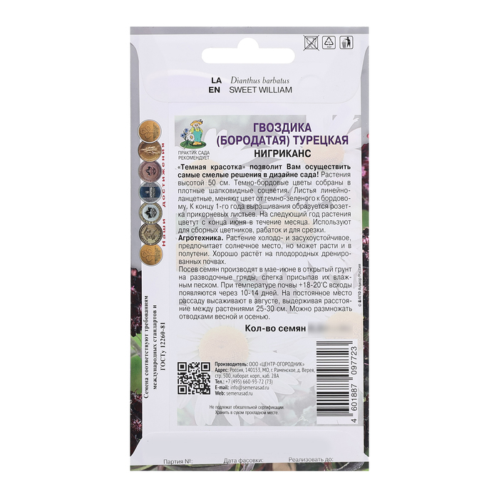 "Темная красотка" позволит Вам осуществить самые смелые решения в дизайне сада! Растения высотой 50 см. Темно-бордовые цветы собраны в плотные шапковидные соцветия. Листья линейно-ланцетные, меняют цвет от темно-зеленого к бордовому. К концу 1-го года выращивания образуется розетка прикорневых листьев. На следующий год растения цветут с конца июня в течение месяца. Используют для сборных цветников, рабаток и для срезки.Агротехника. Растение холодо- и засухоустойчивое, предпочитает солнечное место, но может расти и в полутени. Хорошо растёт на плодородных дренированных почвах. Посев семян производят в мае-июне в открытый грунт на разводочные гряды, слегка присыпав их влажным песком. При температуре почвы +18-20°C всходы появляются через 10-14 дней. На постоянное место рассаду высаживают в августе, выдерживая расстояние между растениями 25-30 см. Можно размножать отводками весной и осенью. Семена соответствуют требованиям международных стандартов и ГОСТу РФ 12260-81