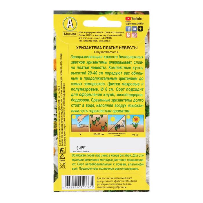 Завораживающая красота белоснежных цветков хризантемы – словно платье невесты, очаровывает и дарит ощущение легкости и безмятежного счастья. Компактные кусты порадуют вас обильным и продолжительным цветением до самых заморозков. Великолепно подходит для оформления клумб, миксбордеров, бордюров, солитеров. Срезанные хризантемы долго стоят в воде, наполняя воздух изысканным, чуть горьковатым ароматом.