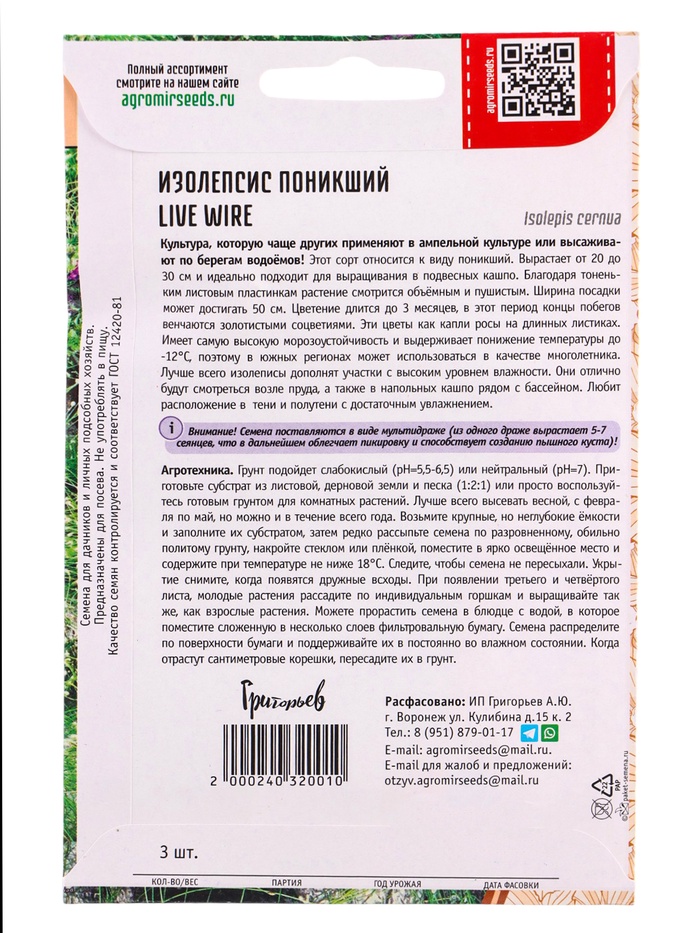 Семена цветов Изолепсис Live Wire поникший 3м.др. 12.2029 г.