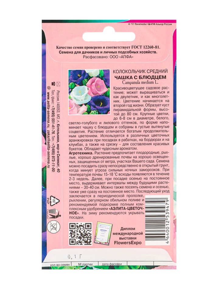 Растение образует куст пирамидальной формы высотой 80 см. Крупные цветы разнообразной окраски собраны в пирамидальные соцветия. Интересная форма цветка напоминает чашку с блюдцем. Цветет в июне-июле.