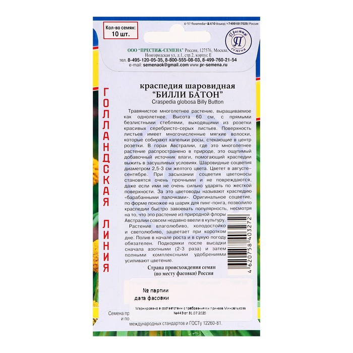 Семена краспедии — это ваш шанс добавить немного солнца и позитивной энергии в ваш сад или дом. С их помощью создание оригинальных и красочных композиций станет простой и увлекательной задачей. Используйте их, чтобы подчеркнуть свой стиль и привнести частичку природы в ваш повседневный мир!