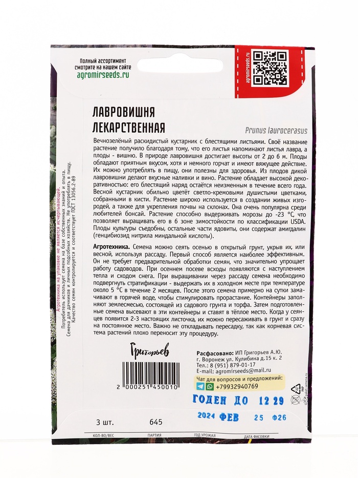 Семена цветов Лавровишня Лекарственная 3 шт. / НОВИНКА 12.29 г.