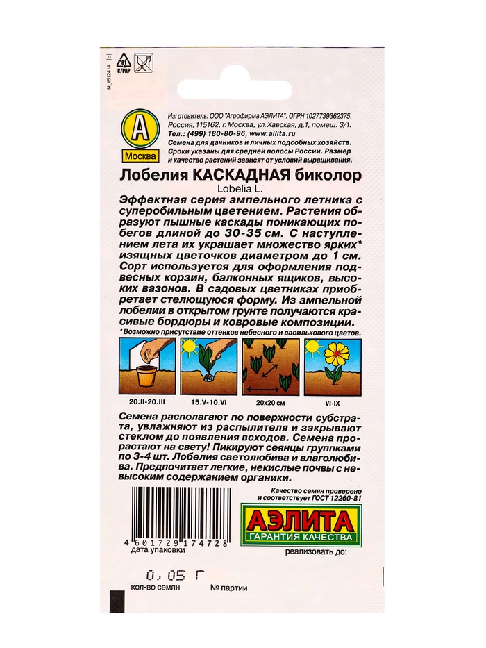 Семена цветов Лобелия каскадная белая , Ц/П,0,05 г