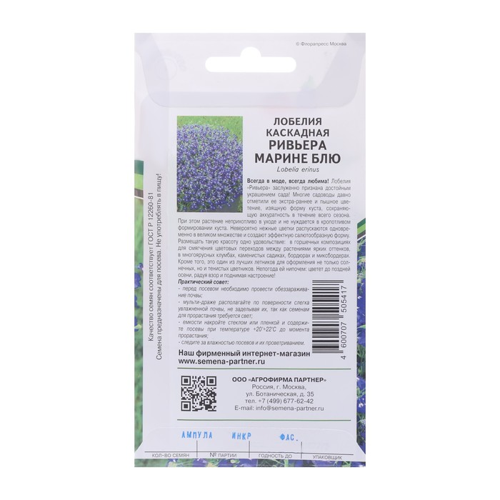 Всегда в моде, всегда любима! Лобелия «Ривьера» заслуженно признана достойным украшением сада. Многие садоводы отметили ее экстра-раннее и пышное цветение, изящную форму куста, сохраняющую аккуратность в течение всего сезона. Растение неприхотливо в уходе и не нуждается в кропотливом формировании куста.