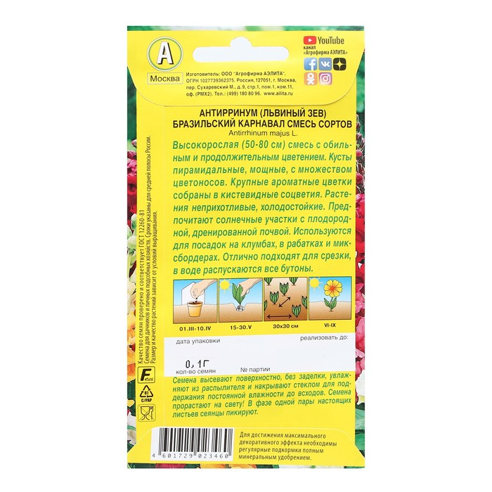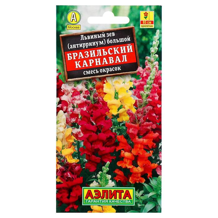 «Бразильский карнавал» — смесь окрасок высокорослого львиного зева с обильным продолжительным цветением. Растение формирует пирамидальные мощные кусты с множеством цветоносов. Крупные ароматные цветки собраны в кистевидные соцветия.