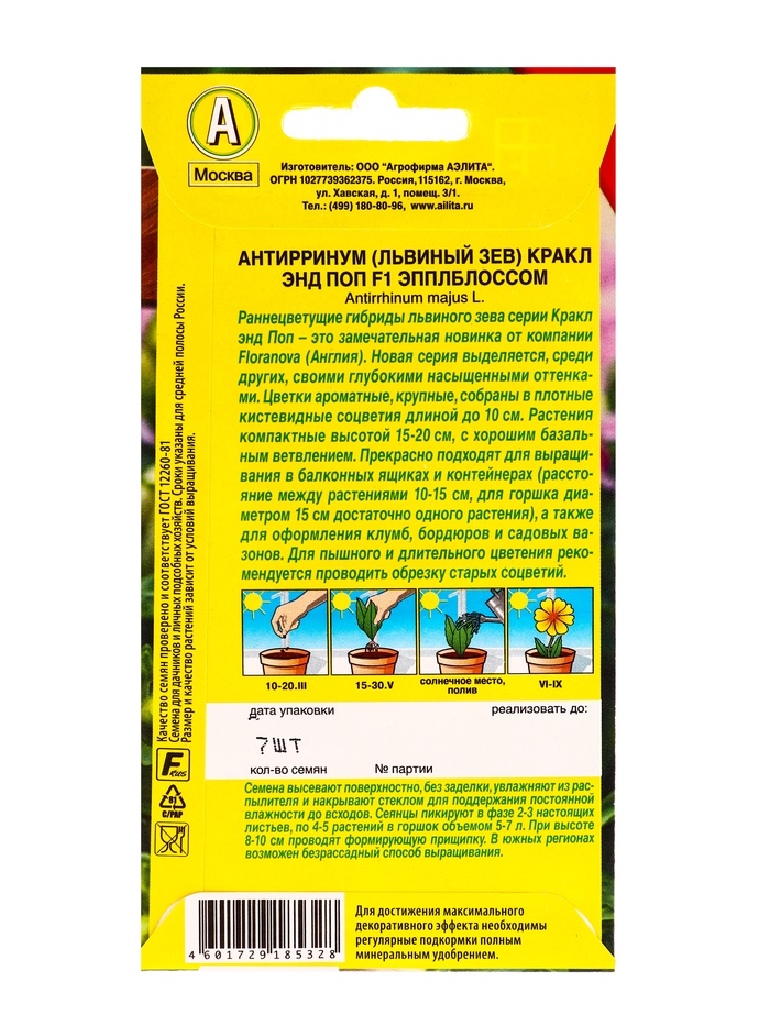 Семена цветов Львиный зев Кракл энд поп F1 эпплблоссом С. Floranova Цветущий балкон, Ц/П,7 шт. 1094