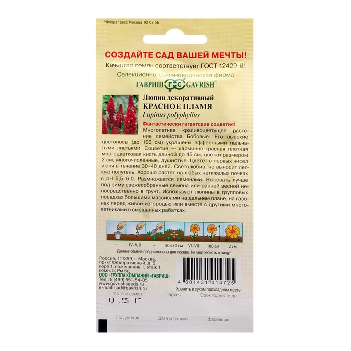Многолетнее красивоцветущее растение семейства бобовых. Его высокие строго вертикальные цветоносы до 100 см высотой украшены эффектными пальчатыми листьями. Соцветие – карминно-красная плотная, многоцветковая кисть длиной до 45 см, цветки размером 2 см, многочисленные, душистые. Цветет с первых чисел июня в течение 30-40 дней. Светолюбив, но выносит легкую полутень. Хорошо растет на любых нетяжелых почвах с рН 5,5-6,0. Размножается семенами. Высевать лучше под зиму свежесобранные семена или ранней весной непосредственно в грунт. Используют люпины в групповых посадках большими массивами на дальнем плане, на газонах пред живой изгородью или вместе с другими многолетниками в смешанных рабатках.