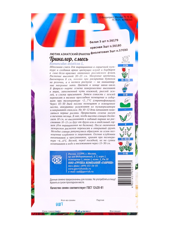 Семена цветов Лютик (Ранункулюс) смесь серия Триколор 9 шт.