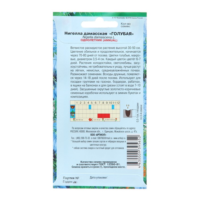 Семена Цветов Нигелла «Голубая», 0.5 г, «Артикул»