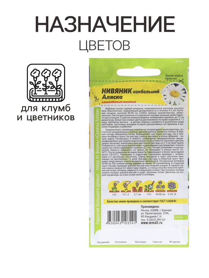 Любимая всеми садовая ромашка, очаровательное растение русского лета. Многолетник, сохраняющий декоративные качества в течение 4-5 лет. Растение высокое, мощное, высотой 80-90 см . Листья темно-зеленые стеблевые. Соцветия - корзинки крупные немахровые белые , диаметром 10 -12 см. Зацветает на второй год в июле, цветение длится до заморозков. Великолепна в одиночных и групповых посадках на газонах, рабатках и миксбордерах, в срезке долго сохраняет декоративность и свежесть. Предпочитает рыхлую, окультуренную на глубину 25-30 см плодородную почву и открытые солнечные места, выносит легкую полутень. В жаркую погоду обязателен полив.