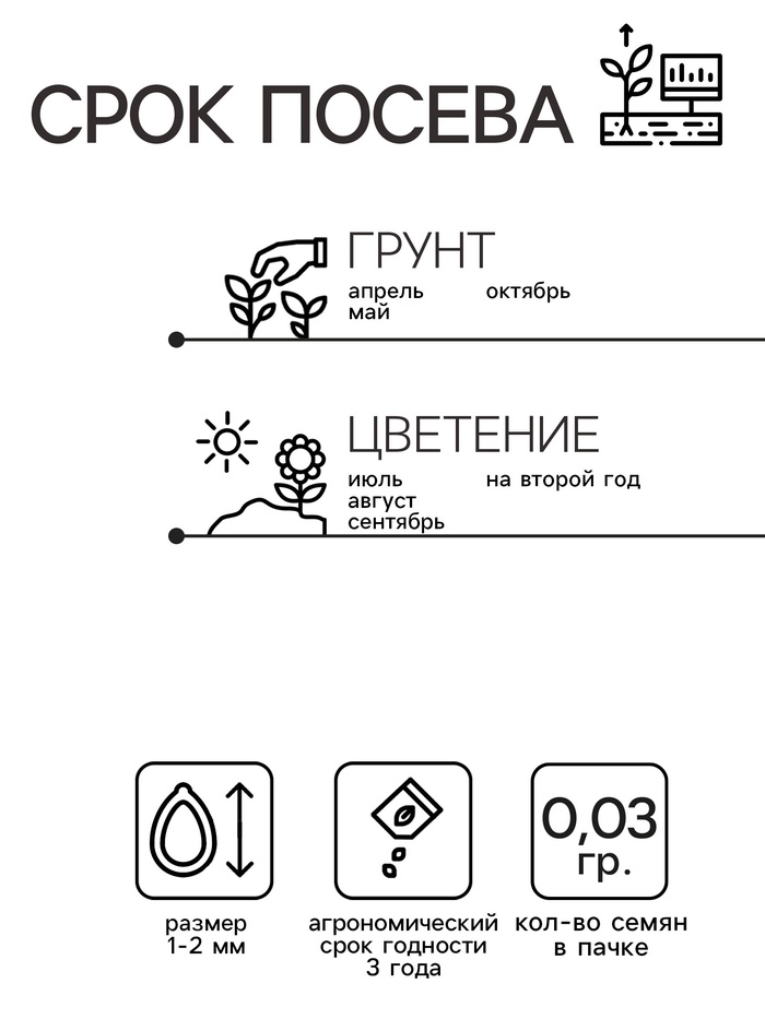 Выращивают рассадным способом или прямым посевом в открытый грунт рано весной или под зиму, в конце октября. При весеннем посеве и температуре почвы 15°C всходы появляются через 2-3 недели. Сеянцы зацветают на второй год.