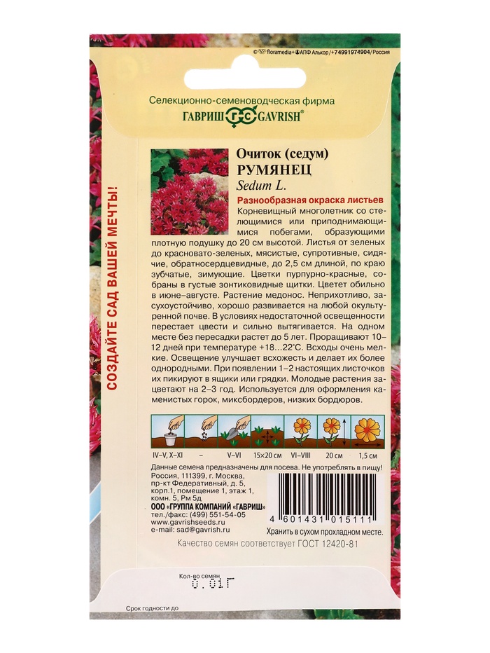 Семена цветов Очиток Румянец (ложный) * 0,01 г серия Альпийская горка