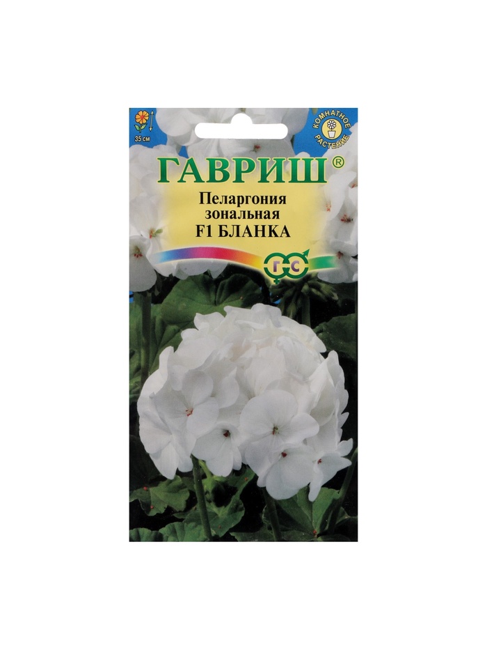 Популярное многолетние комнатное растение из семейства Гераниевых. В пору обильного цветения герань придает окнам праздничный вид. Формирует объемный и компактный кустик высотой 35 см, диаметром 25 см. Листья зеленые, с характерным темным рисунком. Восхитительные чисто-белые цветки образуют крупные, шаровидные соцветия. При тщательном уходе может цвести весь год. Пеларгония светолюбива, неприхотлива в культуре, легко переносит недостаток влаги. Размещают растение на солнечных восточных и западных окнах. В теплое время года любит обильный, частый полив. Зимой, в зависимости от температуры, поливают умереннее. Подкармливают растение минеральными удобрениями, обогащенными калием. Для получения цветущих растений к началу лета посевы производят с декабря по февраль, используя в качестве субстрата чистый торф или смесь торфа с песком. Для комнатного использования высевают в марте-апреле. Всходы обычно появляются через 2-3 недели после посева. В фазе двух-трех настоящих листочков растения пикируют в горшки. Для лучшего кущения рассаду прищипывают над пятым - шестым листом. Летом пеларгонию желательно выносить на свежий воздух, а зимой устанавливать в прохладной светлой комнате с температурой 10-12 °C. Геранями озеленяют балконы, веранды, лоджии. Их используют в цветочных композициях в полутенистых участках сада.