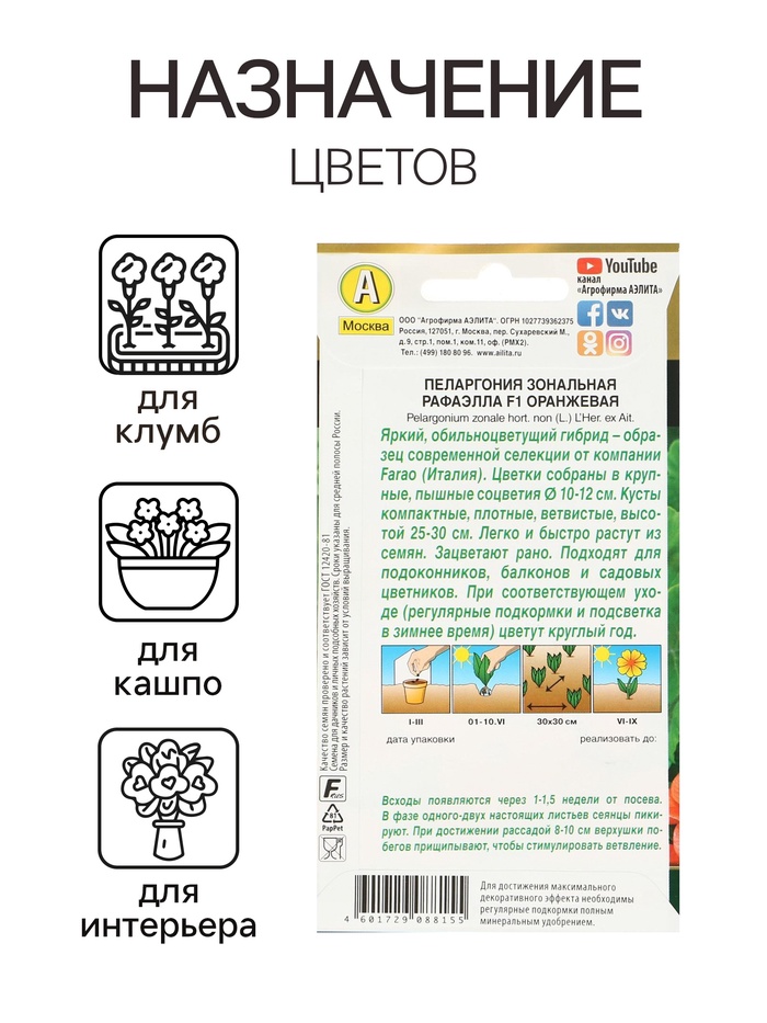 Новые гибриды пеларгонии Рафаэлла F1 оранжевая – образец современной селекции. Их красивые, компактные кусты высотой 30 см хорошо разветвлены, выглядят сильными, густыми, плотными. Венчающие куст пышные шары соцветий 12 см диаметром имеют богатую палитру цветов. Гибриды легко и быстро растут из семян – всходы появляются через 1-1,5 недели, зацветают на ранней стадии развития. Применение универсальное:горшечное содержание в комнатах, на солнечных балконах и в качестве летника в садовых цветниках. Растения устойчивы к жаре, хорошо переносят кратковременные понижения температуры. При соответствующем уходе (регулярные подкормки и подсветка в зимнее время) цветут круглый год.