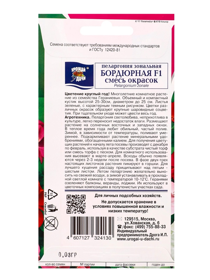 Семена цветов Пеларгония зон. Смесь БОРДЮРНАЯ 0,03 г.