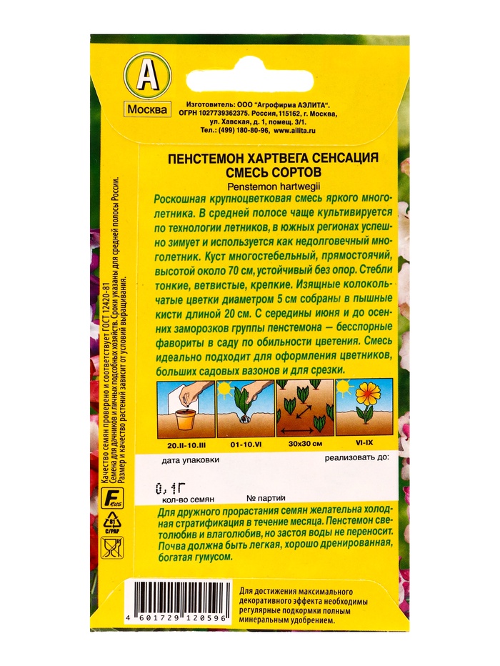 Семена цветов Пенстемон Сенсация, смесь сортов , Ц/П,0,1 г