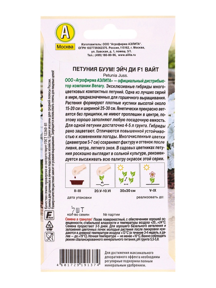Семена цветов Петуния БУУМ! Эйч Ди F1 Вайт многоцветковая (драже) Benary, Ц/П,7 шт.
