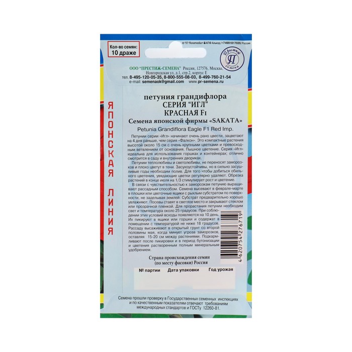 Петунии серии ""Игл"" начинают очень рано цвести, зацветают на 4 дня раньше, чем серия ""Фалкон"". Это компактные растения высотой около 15см с очень крупными цветками и превосходным ветвлением от основания. Пышное цветение. Серия ""Игл"" идеальна для использования горшках и контейнерах; отлично смотрится в саду и внутренних двориках. Петунии теплолюбивы и светолюбивы, не переносят заморозков и плохо цветут в тени. Засухоустойчивы, но в сильно засушливые годы необходим полив. Для того чтобы добиться обильного цветения, увядающие цветки регулярно удаляют. Обрезка растений в конце июля на 1/3 стимулирует рост и цветение.
