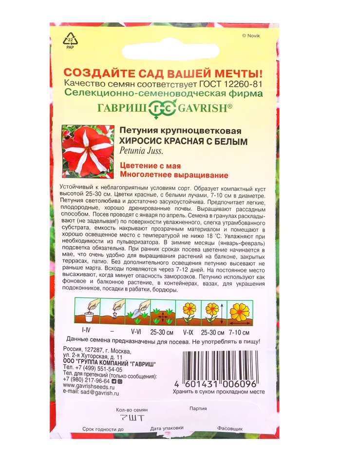 Семена цветов Петуния Хиросис красная с белым крупноцв. 7 шт. гранул. пробирка