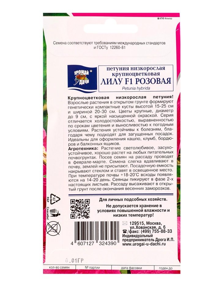 Семена цветов Петуния кр.ЛИЛУ Розовая F1 0,01г. амп.