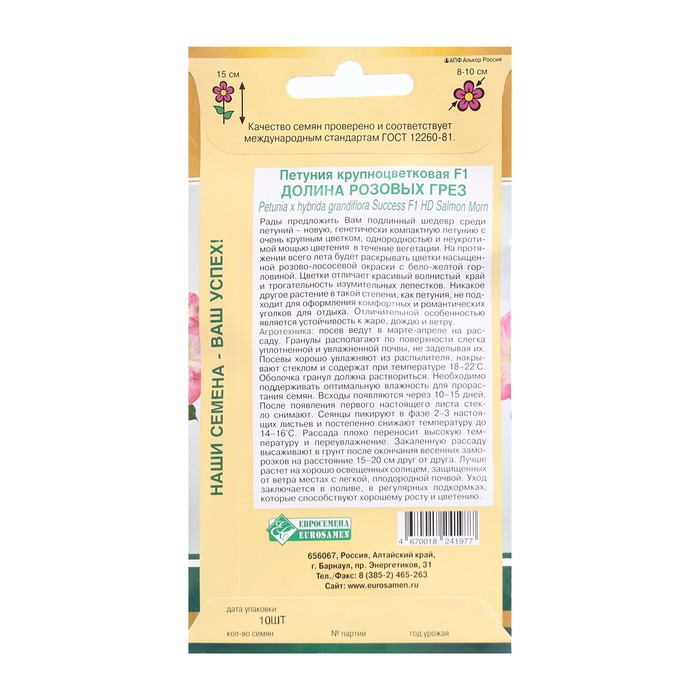 Рады предложить Вам подлинный шедевр среди петуний – новую, генетически компактную петунию с очень крупным цветком, однородностью и неукротимой мощью цветения в течение вегетации. На протяжении всего лета будет раскрывать цветки насыщенной розово-лососевой окраски с бело-желтой горловиной. Цветки отличает красивый волнистый край и трогательность изумительных лепестков. Никакое другое растение в такой степени, как петуния, не подходит для оформления комфортных и романтических уголков для отдыха. Отличительной особенностью является устойчивость к жаре, дождю и ветру.