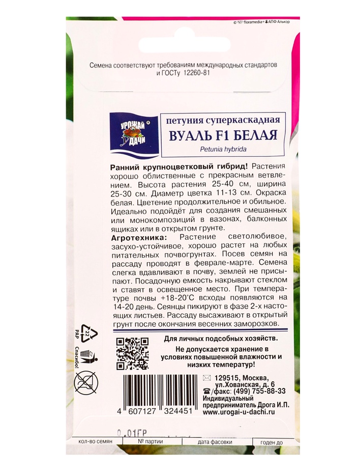 Семена цветов Петуния суперкаскад.ВУАЛЬ Белая F1 0,01г. амп.
