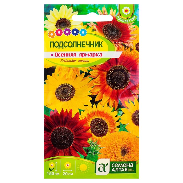 Быстрорастущий однолетник высотой до 150 см. Великолепная смесь необычных расцветок, неповторимые цветовые переходы и сочетания. Диаметр корзинок – до 20 см. В окраске язычковых цветков преобладают желтые, бордовые, вишневые и рубиновые тона. Цветет с июня по сентябрь.