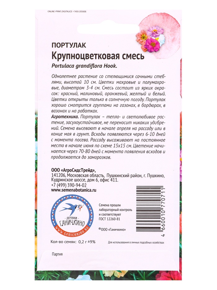 Семена цветов Портулак Крупноцветковая смесь 0,2 г