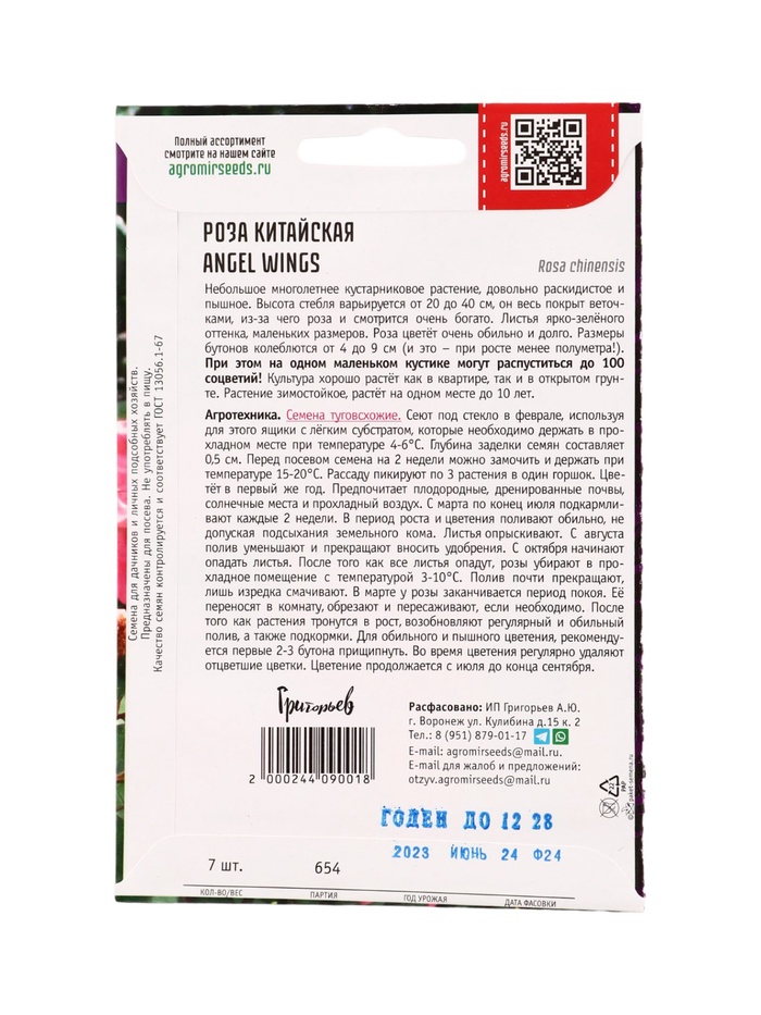 Семена цветов Роза Angel Wings китайская 7шт. АКЦИЯ !!! 12.28 г.