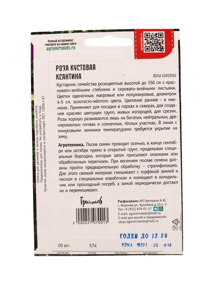 Семена цветов Роза Ксантина кустовая 10 шт. 12.29 г.