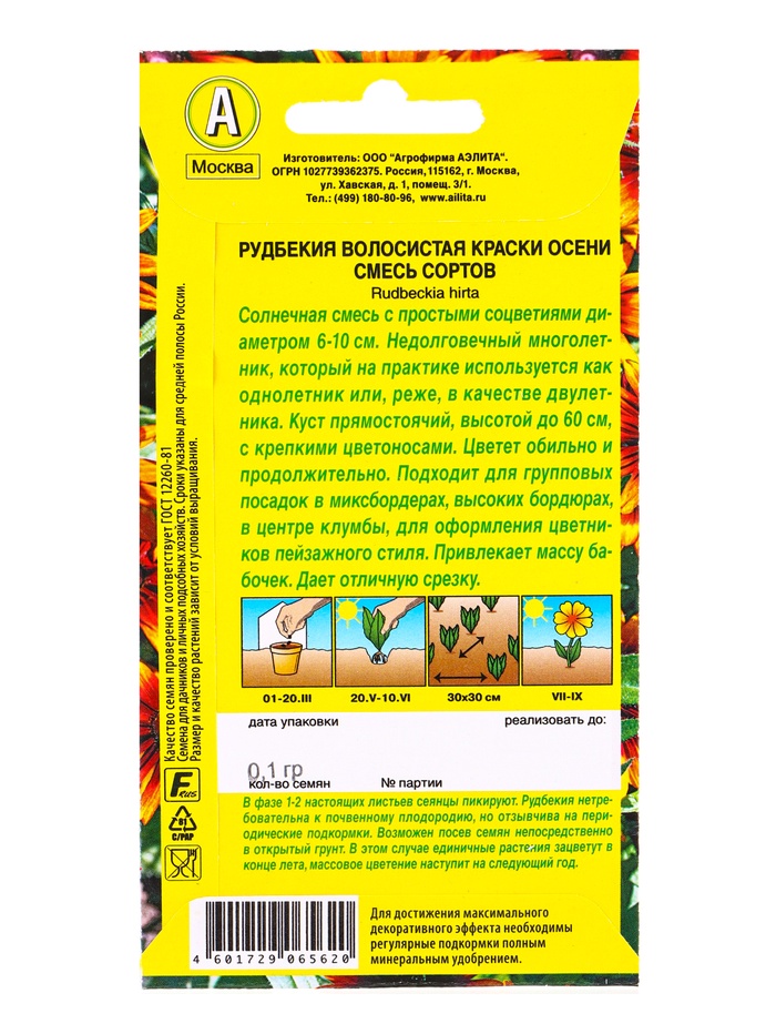 Семена цветов Рудбекия Краски осени, смесь сортов , Ц/П,0,1 г