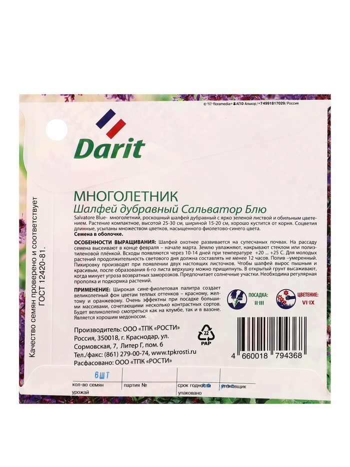 Семена цветов Шалфей дубравный Сальватор Блю Дарит 7шт