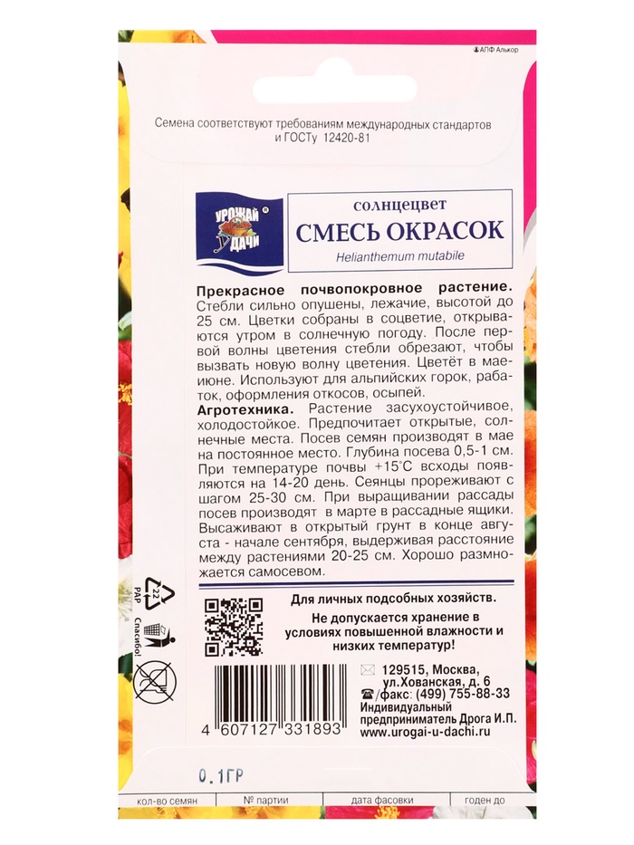 Семена цветов Солнцецвет Смесь 0,1 г.