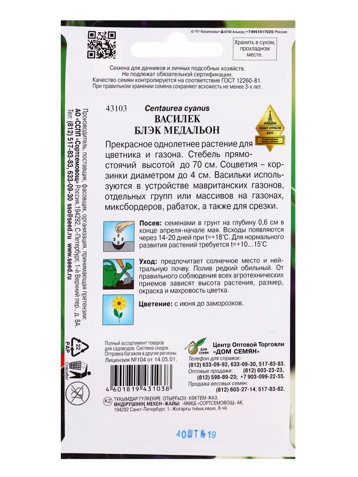 Семена цветов Василёк Блэк Медальон 40 шт