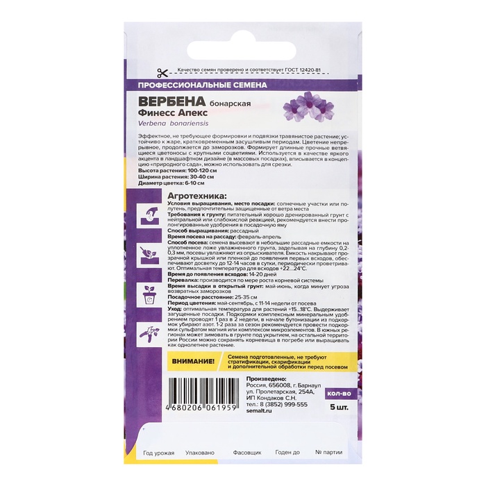 Вербена Финесс Апекс бонарская — это многолетнее растение с изысканными фиолетовыми цветами, которое превосходно подходит для вашего цветника или клумбы. Эти семена гарантируют здоровый и яркий рост, привлекая внимание и создавая уникальную атмосферу в летнем саду.
