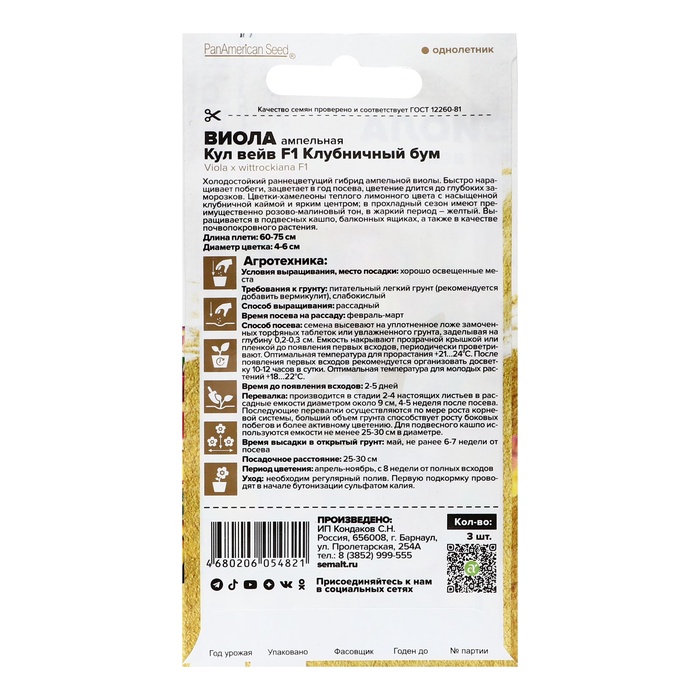 Семена ампельной виолы «Клубничный бум» — прекрасный выбор для любителей ярких и выразительных цветников. Эти однолетние растения украсят ваш сад пышными разноцветными цветками, создавая атмосферу летнего праздника.