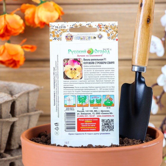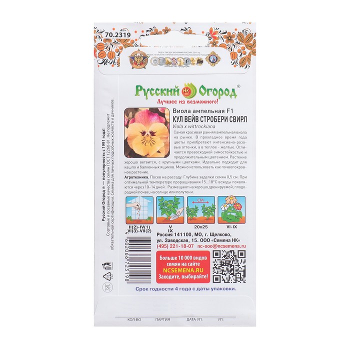 Виола ампельная Кул Вейв Стробери Свирл - это самая красивая ранняя ампельная виола на рынке. Вдвое больше цвета! Высота 20 см. Растение хорошо ветвится, с крупными цветками. В прохладное время года цветы приобретают интенсивно-розовые оттенки, а в теплую - желтые. Можно использовать как почвопокровное растение. Идеально подходит для кашпо и балконных ящиков.