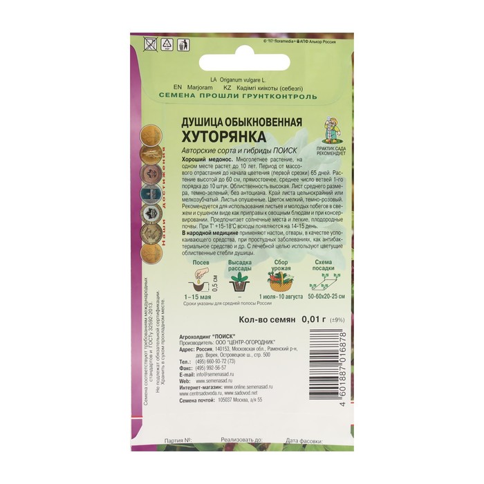 Рекомендуется для использования листьев и молодых побегов в свежем и сушеном виде как приправы к овощным блюдам и при консервировании. Предпочитает солнечные места и легкие, плодородные почвы. Всходы появляются на 14-15 день.