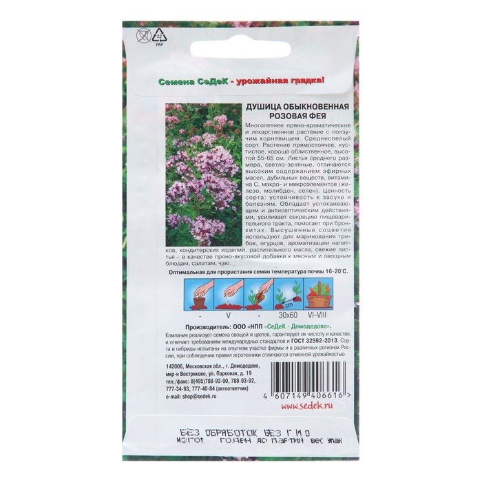 Многолетнее пряно-ароматическое и лекарственное растение с ползучим корневищем. Среднеспелый сорт. Растение прямостоячее, кустистое, хорошо облиственное, высотой 55-65 см. Листья среднего размера, светло-зеленые, отличаются высоким содержанием эфирных масел, дубильных веществ, витамина С, макро- и микроэлементов (железо, молибден, селен). Ценность сорта: устойчивость к засухе и болезням. Обладает успокаивающим и антисептическим действиями, усиливает секрецию пищеварительного тракта, помогает при бронхитах. Высушенные соцветия используют для маринования грибов, огурцов, ароматизации напитков, кондитерских изделий, растительного масла, свежие листья – в качестве пряно-вкусовой добавки к мясным и овощным блюдам, салатам, чаю.