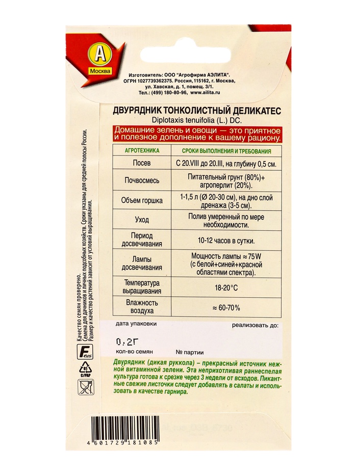 Семена Двурядник тонколистный Деликатес Зимний огород, Ц/П,0,2 г