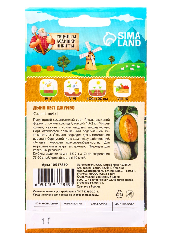 Семена Дыня "Бест Джумбо", 1 г
