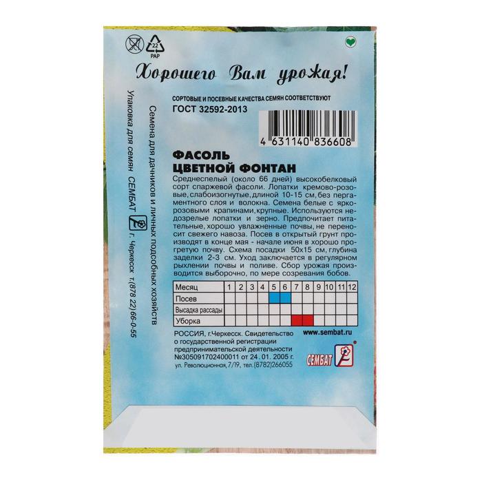 Период от всходов до технической спелости 66 дней. Лопатки длиной 10-15 см, кремово-розового цвета, цилиндрической слабоизогнутой формы, без пергаментного слоя и волокна. Семена крупные, белые с ярко-розовыми крапинами. Используются недозрелые лопатки и зерно. Прекрасный продукт для употребления в свежем виде, в домашней кулинарии, для консервирования и замораживания.